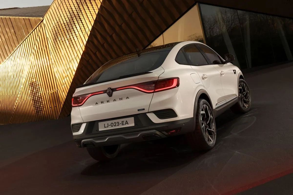 Τα πίσω φωτιστικά σώματα διαθέτουν σκουρόχρωμο κάλυμμα που μοιάζει με κρύσταλλο, χαρίζοντας στο αυτοκίνητο ακόμα πιο μοντέρνα αισθητική. Το χρώμιο στα περιφερειακά διακοσμητικά (γρίλια, πλαίσια παραθύρων κ.λπ.) έχει αντικατασταθεί από μαύρο, ή σατινέ μαύρο ή γυαλιστερό μαύρο, ανάλογα την έκδοση. Όπως και όλα τα σύγχρονα Renault, το νέο Arkana προσφέρεται στη σπορ έκδοση esprit Alpine, που βρίσκεται στην κορυφή της γκάμας.