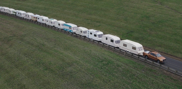 Μην ανησυχείτε. Τη συγκεκριμένη κατάσταση είναι πρακτικά αδύνατο να τη συναντήσετε στο δρόμο σας, καθώς το ασυνήθιστο αυτό καραβάνι από τροχόσπιτα δημιουργήθηκε από τη Ford ειδικά για τις ανάγκες ενός νέου βίντεο που έρχεται να αναδείξει την εντυπωσιακή ελκτική ικανότητα του νέου Ranger pick-up.