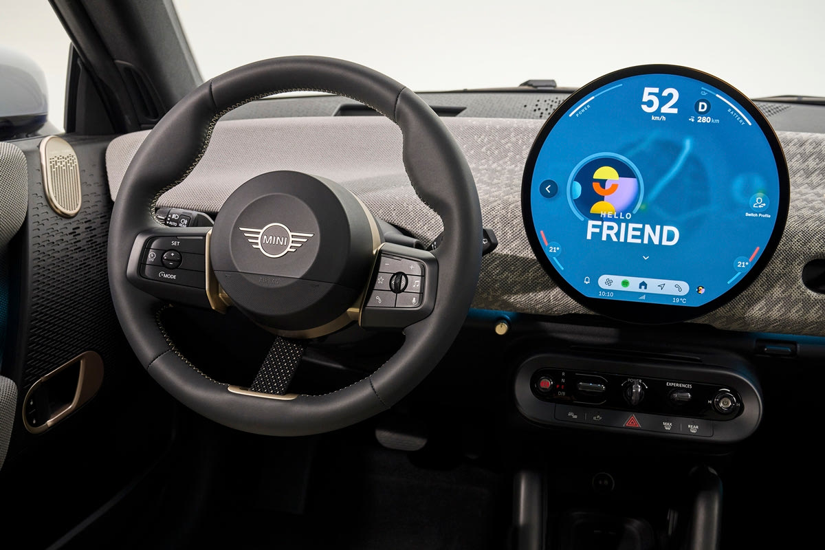 Η κεντρική οθόνη OLED θέτει ένα νέο σημείο αναφοράς με την υψηλή της ανάλυση. Όπως και το στρογγυλό όργανο του προηγούμενου μοντέλου, η νέα κεντρική οθόνη αποτελεί το χαρακτηριστικό γνώρισμα της καμπίνας με τις ευέλικτες λειτουργίες της. Ως πίνακας οργάνων, το MINI Interaction Unit αποτελεί κέντρο εμπειρίας και άνεσης.