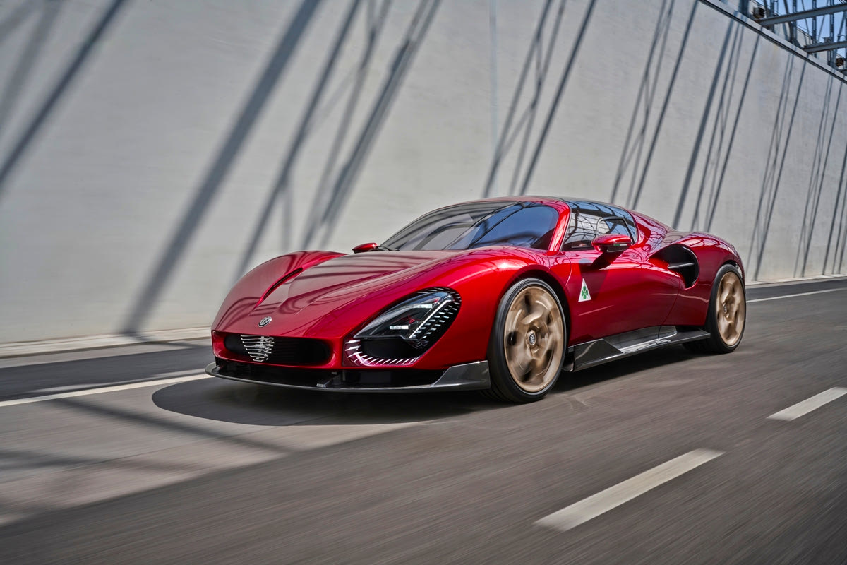 Με ένα πλαίσιο από ανθρακόνημα και αλουμινένια εμπρός και πίσω υποπλαίσια για την έδραση εκτός των άλλων και της ανάρτησης, η νέα 33 Stradale είναι εμφανισιακά συγκλονιστική. Το νέο αυτό supercar, μπορεί να εφοδιαστεί είτε με κινητήρα βενζίνης (V6 με χωρητικότητα 3,0 λίτρων και απόδοση 620 ίππων), είτε με τρεις ηλεκτροκινητήρες (και μπαταρία) και απόδοση πάνω από 750 ίππους.