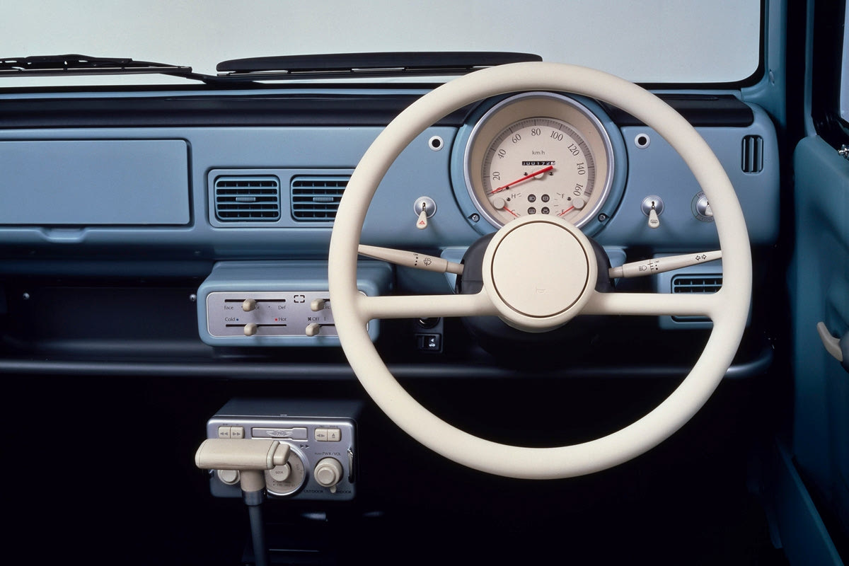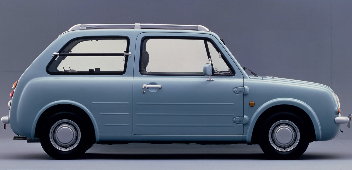 Η Nissan, που έχει έτσι και αλλιώς τεράστια ιστορία γενικότερα- αλλά ειδικότερα στην κατηγορία των μικρών αυτοκινήτων, έφερνε στο φως ένα μοντέλο που στο Τόκιο ακόμα δεν είχε όνομα. Είχε όμως όπως φάνηκε, τρομερή χάρη και η απήχησή του στο κοινό, ξεπέρασε κάθε φιλόδοξη προσδοκία. Ο σχεδιασμός του μικρού μοντέλου με τα ρετρό στοιχεία, πιστώνεται στον Ναόκι Σακάι ο οποίος αποδείχτηκε μετρ στα αυτοκίνητα αυτής της κατηγορίας.