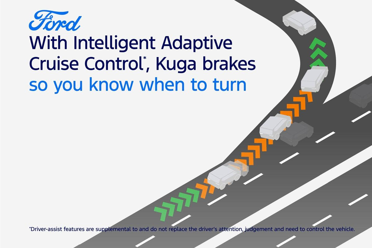 Το έξυπνο σύστημα πλοήγησης που συνδέεται στο cloud συνεργάζεται με το Intelligent Adaptive Cruise Control ώστε το Ford Kuga να μειώσει ταχύτητα όταν πλησιάζει στην επιλεγμένη έξοδο – πλέον της παροχής τακτικών οπτικών και ηχητικών ειδοποιήσεων. Η τεχνολογία λειτουργεί επικουρικά ως πρόσθετη προτροπή προς τους οδηγούς. Εάν ο οδηγός θέλει να συνεχίσει αγνοώντας την έξοδο, απλά πρέπει να πατήσει το γκάζι.