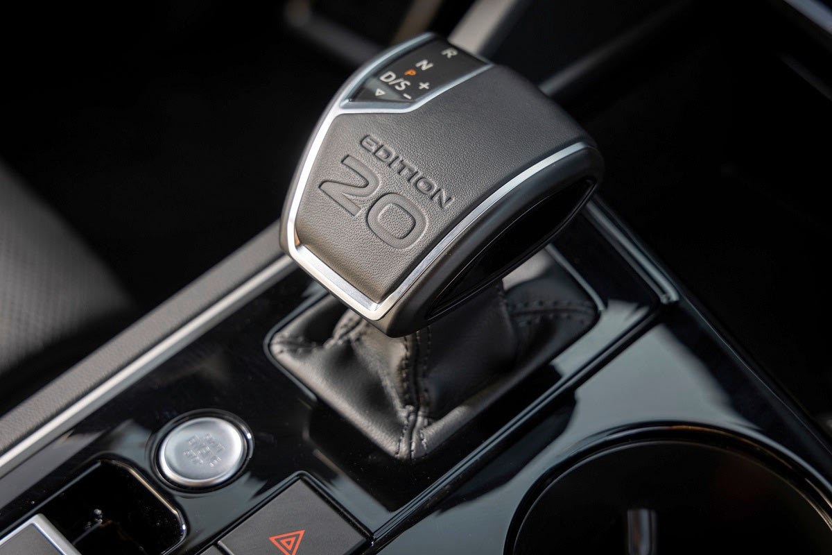 - Το πολυτελές σαλόνι υποδέχεται τους επιβάτες με ένα καλωσόρισμα με τη φωτεινή ένδειξη του λογότυπου “EDITION 20”. Υψηλής ποιότητας δέρμα Sanova (στάνταρ εξοπλισμός) καλύπτει τα καθίσματα με ειδική ραφή καπιτονέ και νήματα σε μπεζ χρώμα Ceramique, ενώ σπορ τόνο δίνουν κάποιες κόκκινες πινελιές. Οι ραφές με τον συνδυασμό σε μπεζ και κόκκινο χρώμα των νημάτων εμφανίζονται σε αρκετά σημεία στο ταμπλό, στο τιμόνι και στις εσωτερικές επενδύσεις των θυρών. Η δερμάτινη επένδυση στον επιλογέα του αυτόματου κιβωτίου διαθέτει και αυτή το λογότυπο “EDITION 20”.