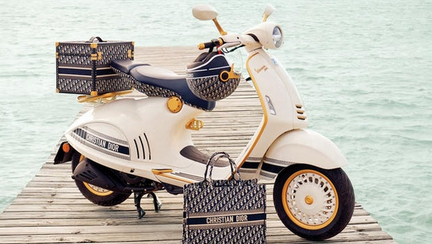 Κι ιδού η Vespa 946 Chrstian Dior, η οποία ξεχειλίζει από χρυσάφι και απευθύνεται σε γυναίκες ή σε όσους αισθάνονται γυναίκες, όπως είχε πει κάποτε ένας γνωστός Ελληνας μόδιστρος!