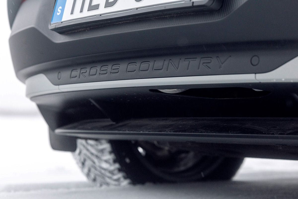 Από σχεδιαστικής πλευράς, η μάσκα και το πίσω μέρος του αυτοκινήτου έχουν σκούρο χρώμα: το εμπρός τμήμα αποτυπώνει περίτεχνα την τοπογραφία της οροσειράς Kebnekaise στην αρκτική Σουηδία – η οποία αποτελεί έμπνευση για πολλούς από τους σχεδιαστές της Volvo. Οι ογκώδεις εμπρός και πίσω προστατευτικές ποδιές και οι προεκτάσεις στους θόλους των τροχών συμπληρώνουν τη σκληροτράχηλη εμφάνιση.