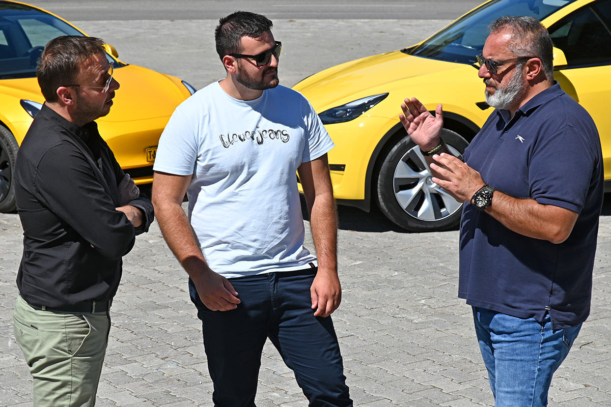 Ο Γιώργος και ο Σταύρος, είναι οι πρώτοι επαγγελματίες οδηγοί και ιδιοκτήτες ταξί, που επέλεξαν αυτοκίνητα της Tesla για να κάνουν τη δουλειά τους. Μάλιστα, την ημέρα της φωτογράφησης, ο Σταύρος ήταν μόλις στην τρίτη μέρα που είχε το αυτοκίνητο στο δρόμο επισήμως. Τα πλεονεκτήματα της ηλεκτροκίνησης είναι δεδομένα, με το μηδενικό περιβαλλοντικό αποτύπωμα κατά τη χρήση τους και το κόστος “επαναφόρτισης”.