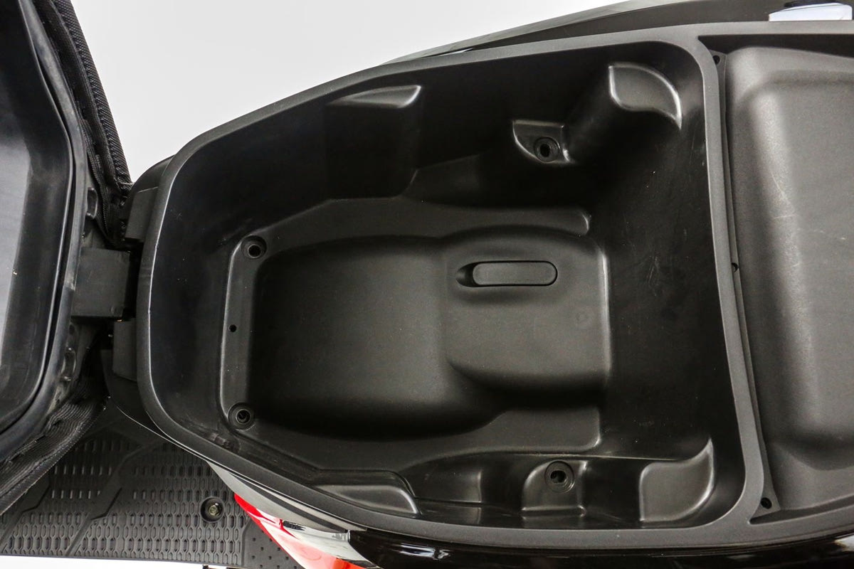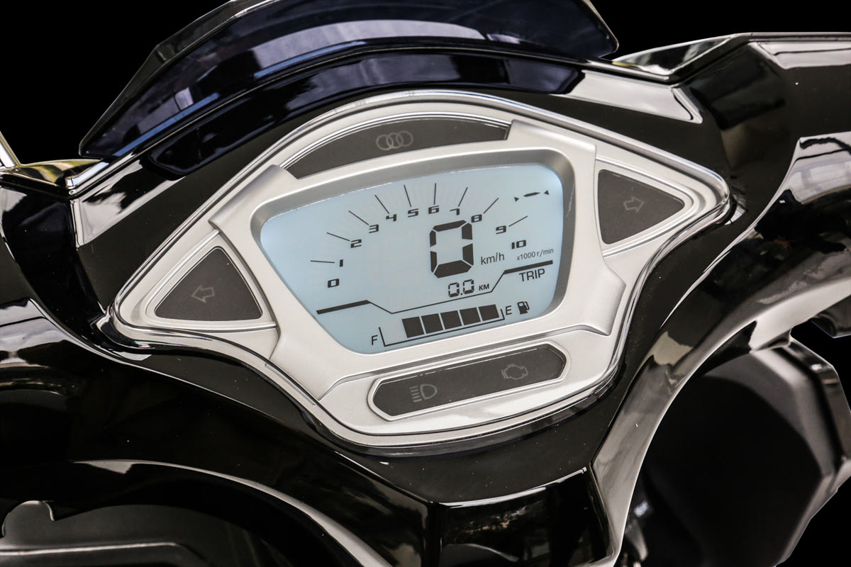 Παράλληλα, η μεγάλη και άνετη σέλα, προσφέρει υποστήριξη μέσης για τον αναβάτη, ενώ από κάτω κρύβει χώρο αποθήκευσης ικανό για τα καθημερινά μικροαντικείμενα. Επίσης οι χούφτες στο τιμόνι εξασφαλίζουν άνεση και προστασία στις μετακινήσεις. Ακόμα ένα εντυπωσιακό στοιχείο εξοπλισμού είναι ο μεγάλος ψηφιακός πίνακας οργάνων, που περιλαμβάνει στροφόμετρο και ένδειξη φόρτισης μπαταρίας.