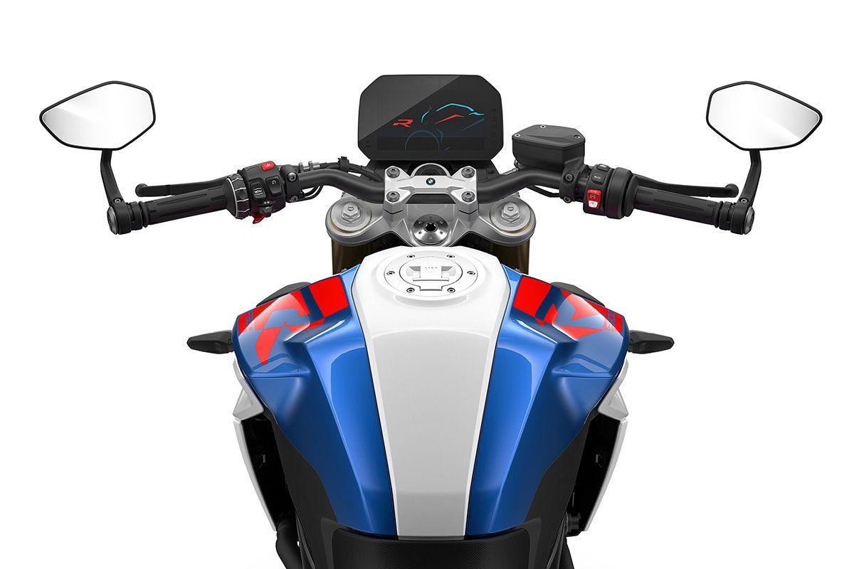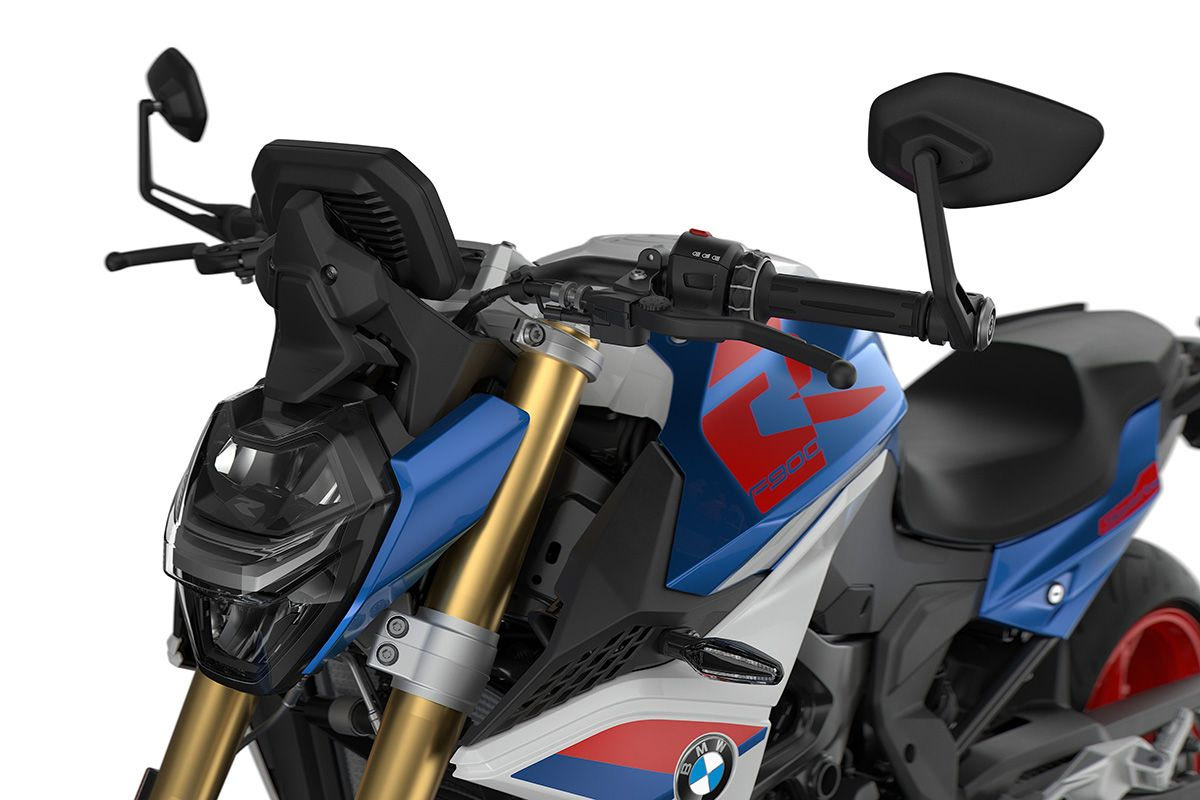 Το τιμόνι, τα μαρσπιέ και οι ποδομοχλοί του εργονομικού τριγώνου που σχηματίζεται ανάμεσα στο τιμόνι, τη σέλα και τα μαρσπιέ της νέας BMW F 900 R έχουν επανασχεδιαστεί. Αυτή η αλλαγή έχει ως αποτέλεσμα τη δημιουργία μιας θέσης οδήγησης που είναι αισθητά πιο σπορ και πιο κοντά στον μπροστινό τροχό.