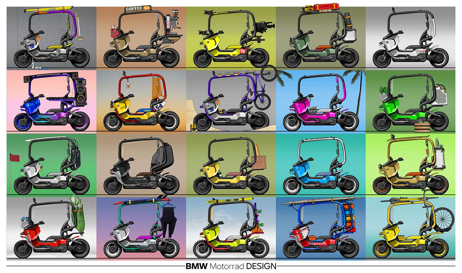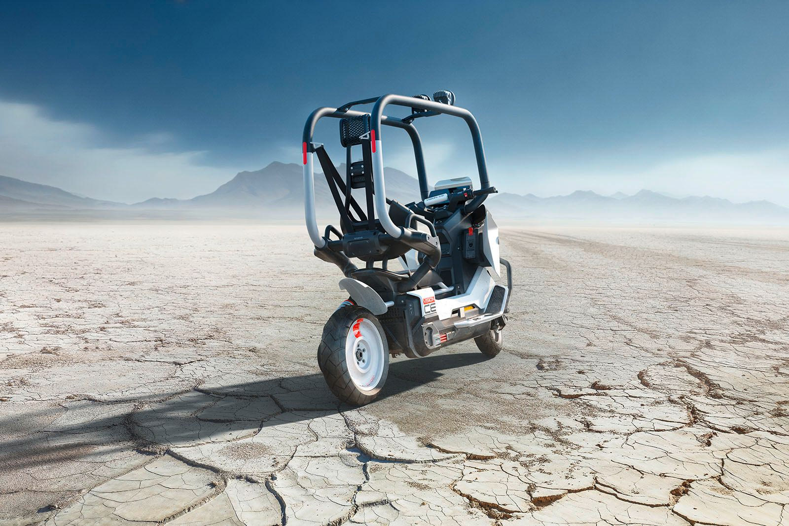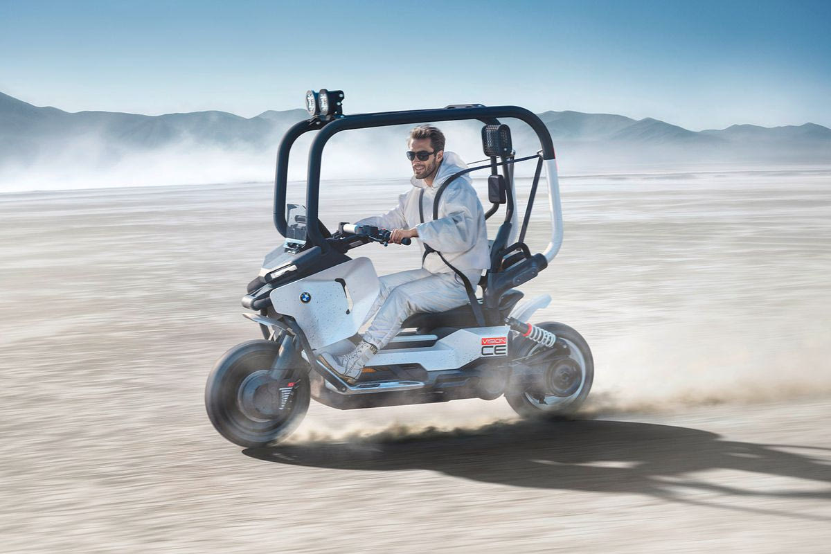 Το BMW Motorrad Vision CE επαναπροσδιορίζει την έννοια της αστικής οδηγικής απόλαυσης σε δύο τροχούς, χάρη στον μοναδικό σχεδιασμό του «κλωβού», που καταργεί την ανάγκη χρήσης κράνους ή προστατευτικού ρουχισμού. Οι διαφορετικές σχεδιαστικές παραλλαγές αναδεικνύουν την ευελιξία αυτού του οραματικού δίτροχου.