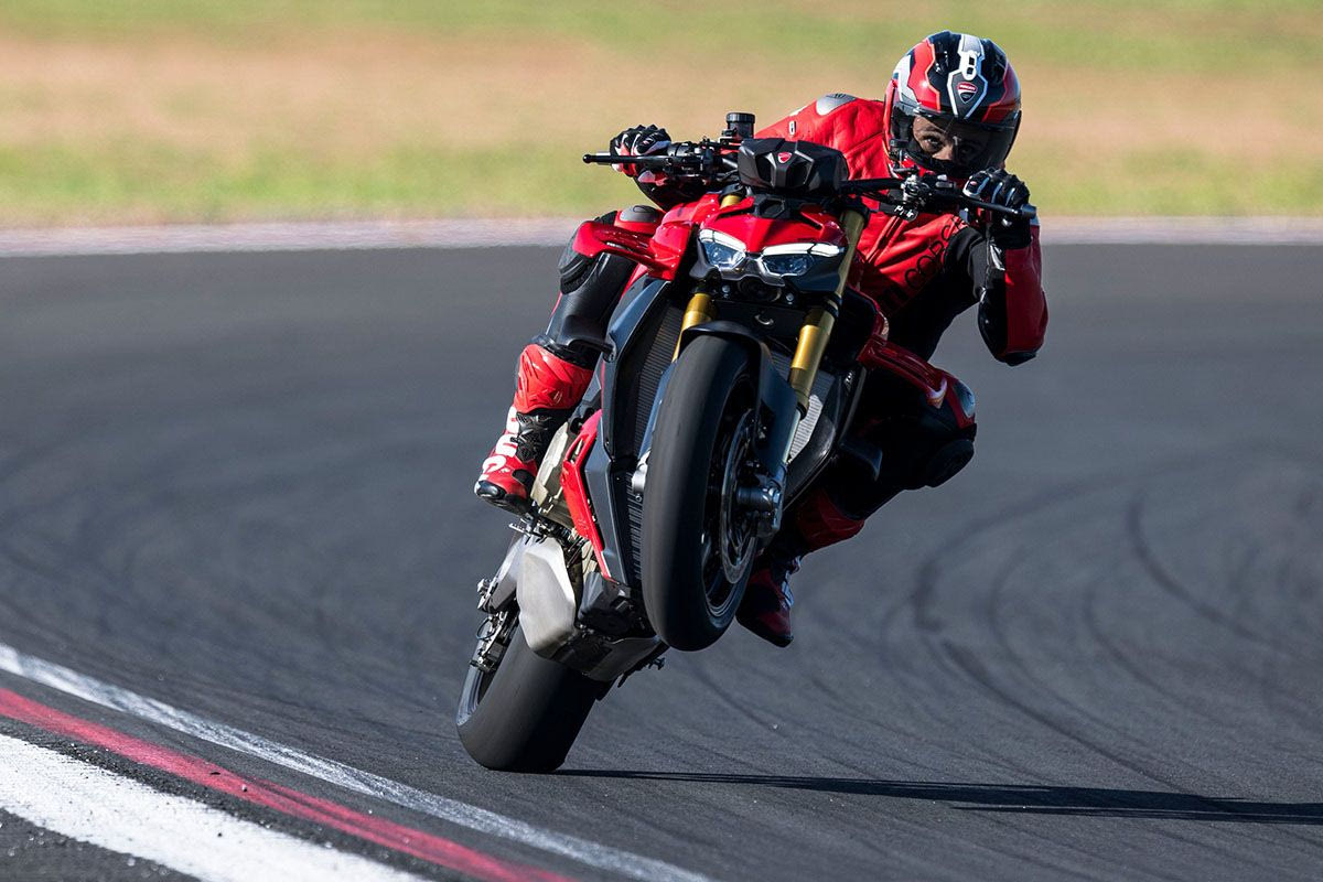 Η εντυπωσιακή αναλογία ισχύος/βάρους 1,13 hp/Kg, που προέρχεται από έναν ελαφρύτερο και ισχυρότερο κινητήρα (+6 hp), εγκεκριμένο κατά Euro5+, σε συνδυασμό με τις εξελίξεις των ηλεκτρονικών συστημάτων και του πλαισίου, όπως DVO, ανάρτηση Öhlins Smart EC3.0 και το νέο σύστημα πέδησης Race eCBS, καθιστούν τη νέα Streetfighter V4 ακόμα πιο αποτελεσματική στην πίστα.