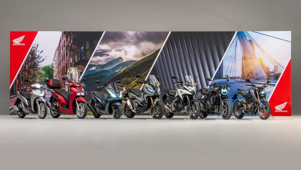 Τα επτά εξελιγμένα μοντέλα της Honda καλύπτουν όλες τις κατηγορίες, από δίτροχα για την πόλη μέχρι μοτοσυκλέτες για περιπέτεια και roadster.