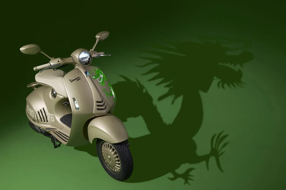 Η Vespa 946 έχει επανασχεδιαστεί σε αποκλειστικό χρυσό χρώμα για τη συλλεκτική έκδοση Dragon, η οποία αποτελεί μια έκφραση του έντονου πνεύματος του ιταλικού scooter. Διαθέσιμη σε μόνο 1.888 αντίτυπα, είναι διακοσμημένη με το μοτίβο ενός σμαραγδένιου πράσινου δράκου που έρπει πάνω στο σώμα.