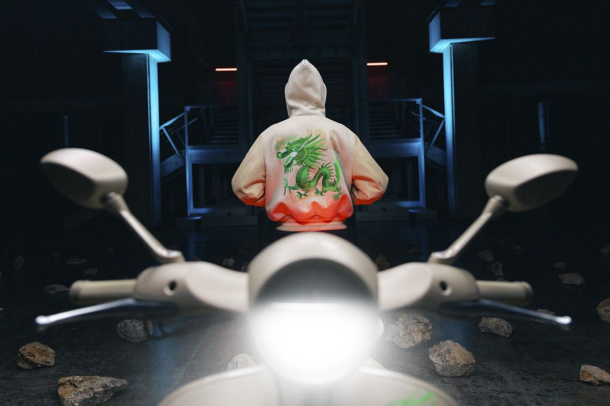 Με τη χειροποίητη έκδοση αυτή η Vespa θέλει να αντιπροσωπεύσει ένα μείγμα πολιτισμών, καινοτομίας και επιτήδευσης. Και με την ευκαιρία αυτή, και προς τιμήν του Σεληνιακού Νέου Έτους, η Vespa παρουσιάζει το πρώτο της fashion ένδυμα, το Dragon Varsity Jacket.
