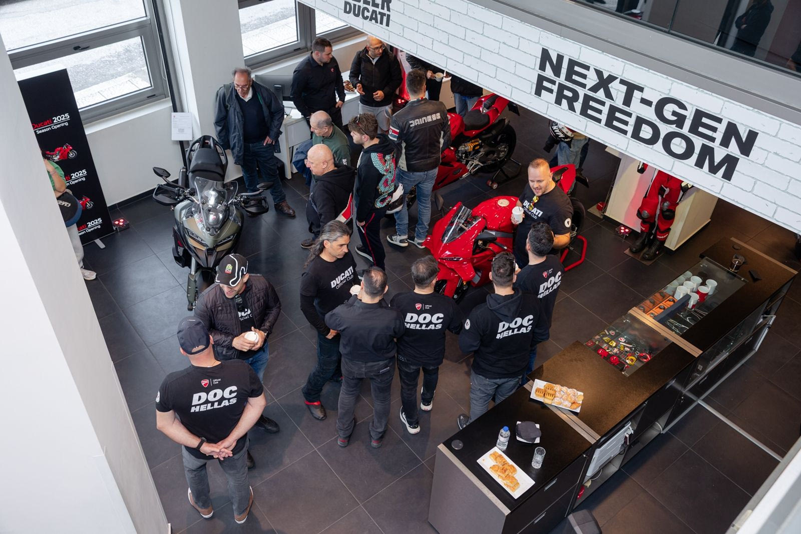 Η ατμόσφαιρα ήταν γεμάτη ενέργεια, με τον γνωστό DJ, παρουσιαστή και φίλο της μάρκας, Κώστα Φραγκολιά να δίνει ρυθμό στη στιγμή με upbeat & rock ήχους στην πιο δυναμική κοινότητα – τη Ducati οικογένεια. Οι παρευρισκόμενοι είχαν την ευκαιρία να συνομιλήσουν με τα στελέχη της Ducati, να δοκιμάσουν νέα αξεσουάρ και ρουχισμό και να μοιραστούν την κοινή αγάπη για την ταχύτητα και την ιταλική φινέτσα.