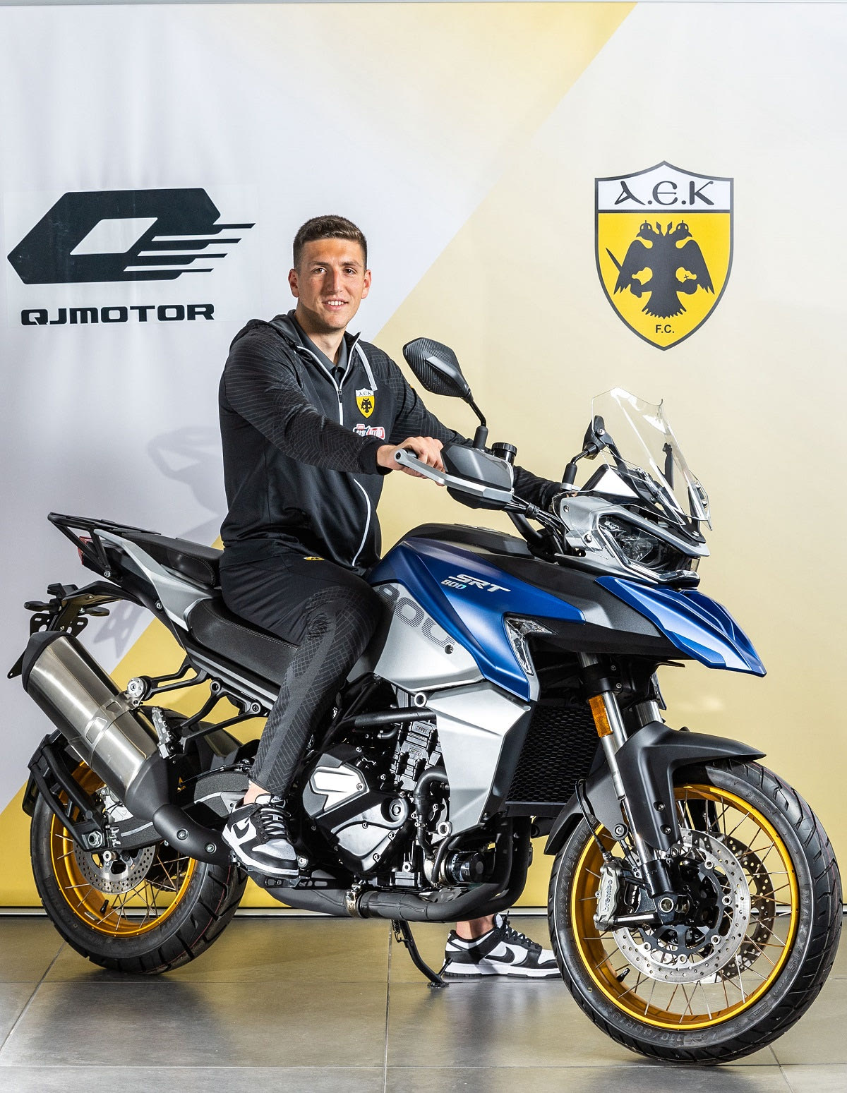Ο 21χρονος ταλαντούχος ποδοσφαιριστής “συναντήθηκε” με την ναυαρχίδα SRT 800X του νέου brand QJMOTOR στις εγκαταστάσεις της εταιρείας ΓΚΟΡΓΚΟΛΗΣ Α.Ε. και δήλωσε εντυπωσιασμένος από τη μοτοσυκλέτα. Η SRT 800X είναι μια μεσαίου κυβισμού adventure bike και προτάσσει ως κυριότερα επιχειρήματα το συνδυασμό των μεγάλων δυνατοτήτων και της ανταγωνιστικής τιμής: 8.295 ευρώ.