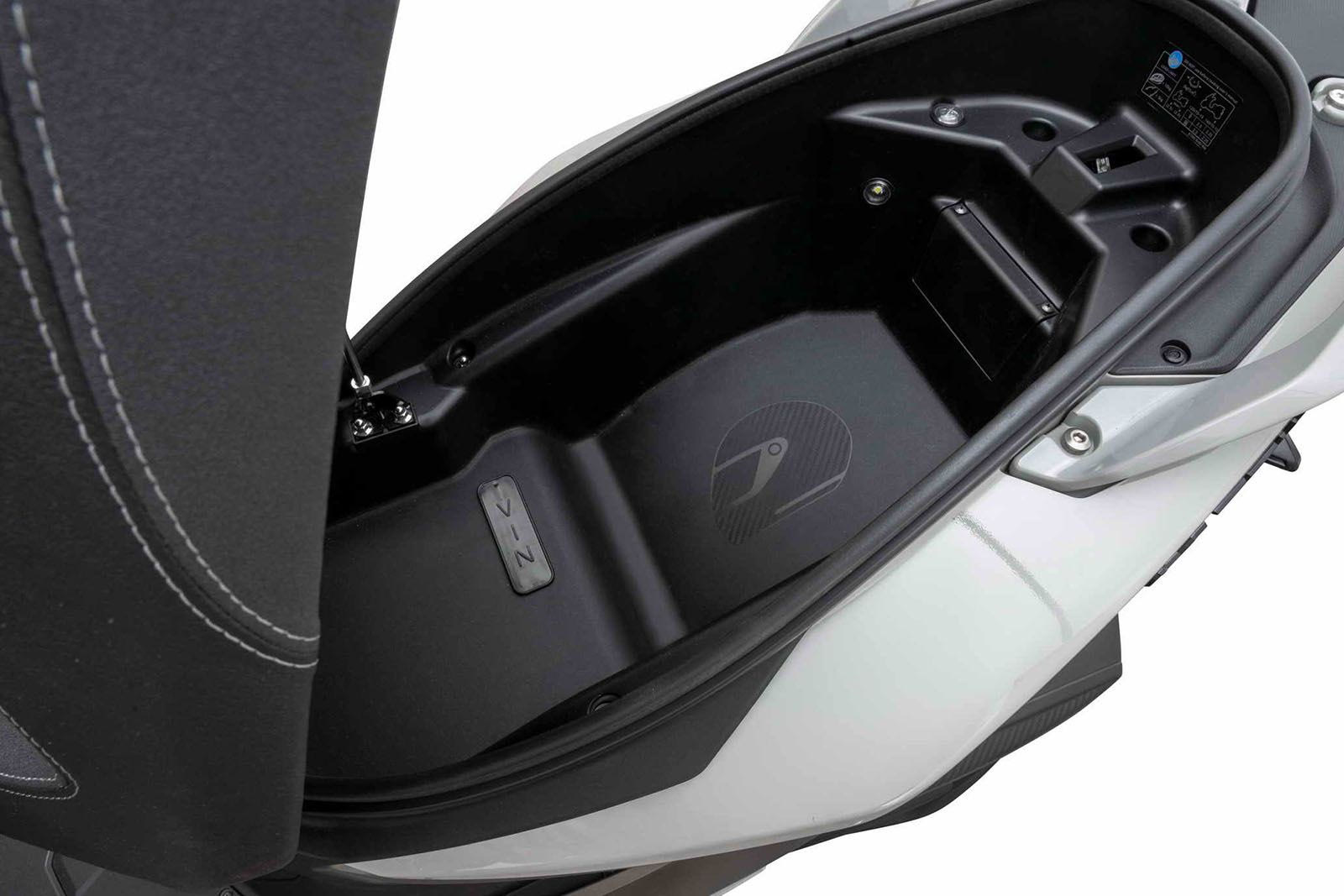Ο αποθηκευτικός χώρος κάτω από τη σέλα μπορεί να χωρέσει ένα κράνος full face και διάφορα ακόμη μικροπράγματα, οι λειτουργίες ελέγχονται μέσω τεχνολογίας Keyless, ενώ o πίνακας οργάνων αποτελείται από μια υψηλής ευκρίνειας ψηφιακή οθόνη LCD με πλήρεις ενδείξεις.