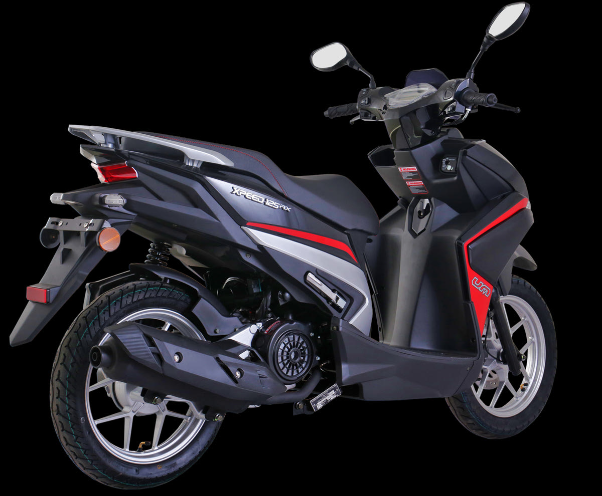 Παράλληλα, ο χώρος κάτω από τη μεγάλη, άνετη και εργονομικά σχεδιασμένη σέλα προσθέτει στη συνολική άνεση. Το νέο scooter UM XPEED εφοδιάζεται με έναν σύγχρονο, 4χρονο κινητήρα, με ηλεκτρονικό ψεκασμό, 125 cc και απόδοση 8,84 ίππων (PS) και 8,6 Nm ροπής. Με ρεζερβουάρ 6 λίτρων και μόλις 2,4 λτ./100 χλμ. μέση κατανάλωση, το νέο σκούτερ της αμερικάνικης UM έχει ικανή αυτονομία και κάνει μεγάλη οικονομία στις καθημερινές μετακινήσεις.