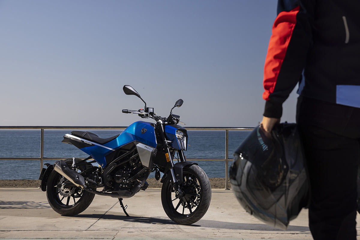 Ένας δίσκος διαμέτρου 280mm μπροστά και ένας δεύτερος 240mm πίσω προσφέρουν εξαιρετικά επίπεδα ασφάλειας σε συνδυασμό με το δικάναλο ABS. Η PM-01 125 διαθέτει τροχούς 17 ιντσών με ελαστικά 110/70 R17 μπροστά και 150/60 R17 πίσω για μέγιστη ευελιξία. Η PM-01 125 δεν έχει περιττά στοιχεία και το διακριτικά τοποθετημένο φέρινγκ αναδεικνύει τον κινητήρα με εκλεπτυσμένο τρόπο, όπως και το μαύρο σωληνωτό πλαίσιο και η ανάρτηση.