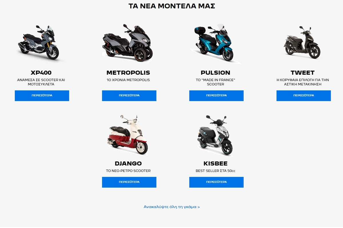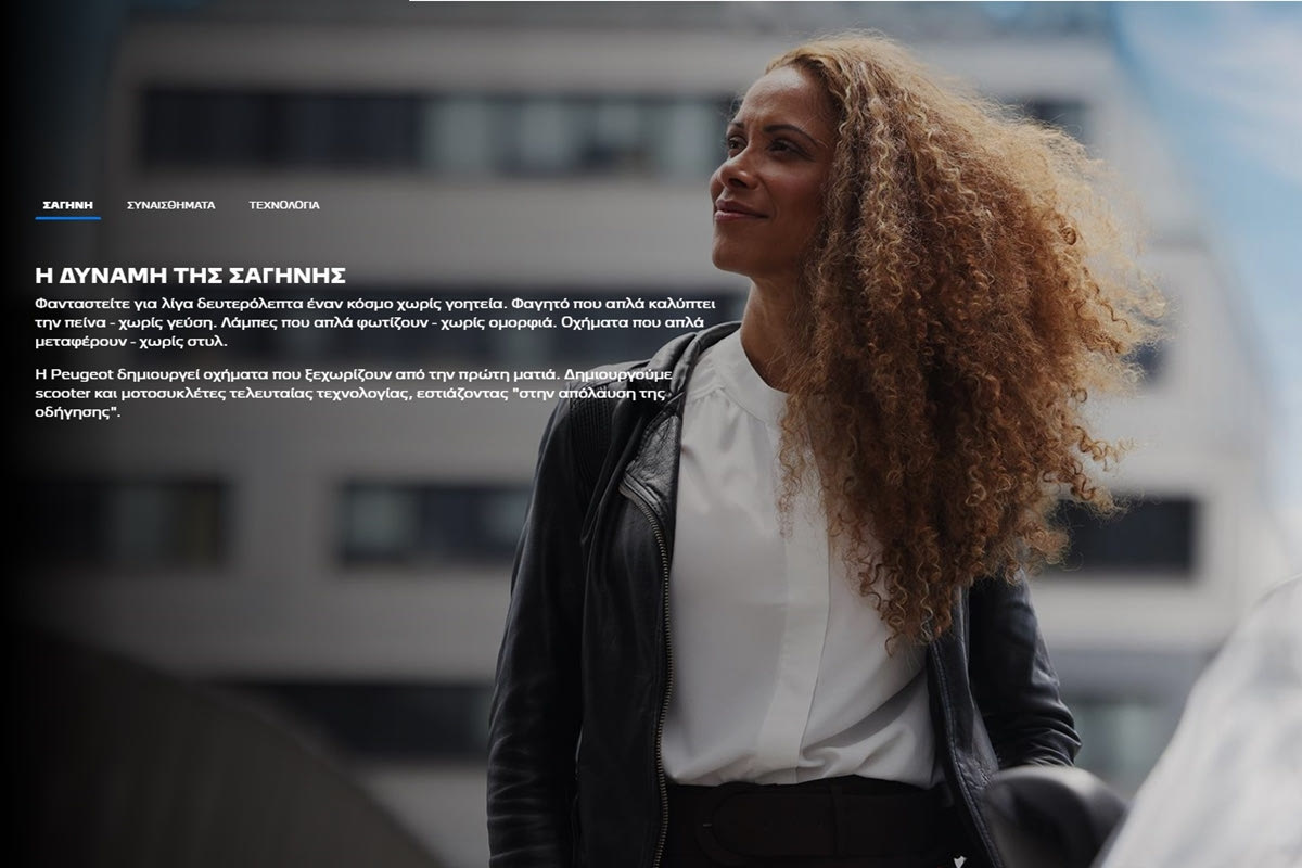 Εμπνευσμένο από τη γαλλική αφαιρετική αισθητική και τον δυναμισμό της μάρκας, το website peugeot-motocycles.gr, το οποίο είναι εστιασμένο στο κορυφαίο User Experience (UI) και User Interface (UI), σηματοδοτεί μια νέα, σαγηνευτική εποχή για την ιστορική μάρκα στη χώρα μας ενώ παράλληλα κάνει αυτό ακριβώς που δηλώνει στην κεντρική του σελίδα:
