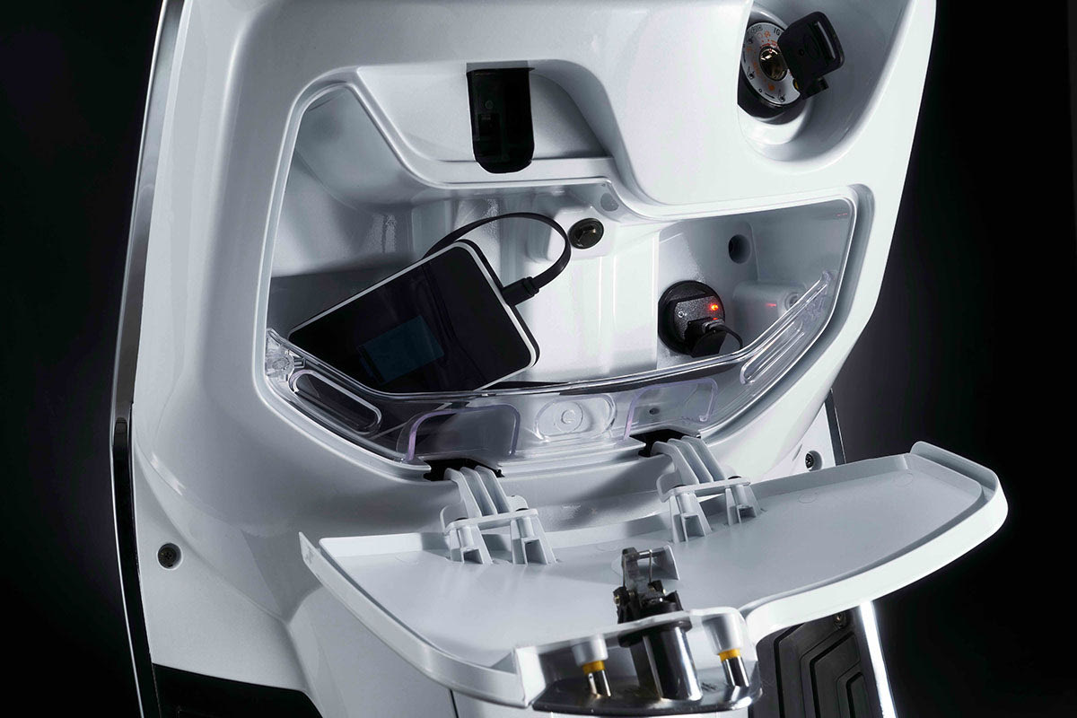 Στο ντουλαπάκι για μικροαντικείμενα της ποδιάς -που κλειδώνει- υπάρχει και παροχή USB για φόρτιση ηλεκτρονικών συσκευών. Η ευχρηστία του νέου Like 125i συμπληρώνεται από το διπλό -πλαϊνό και κεντρικό- σταντ, την ανατομική δίχρωμη σέλα, τις χειρολαβές και τα αναδιπλούμενα μαρσπιέ του συνεπιβάτη.
