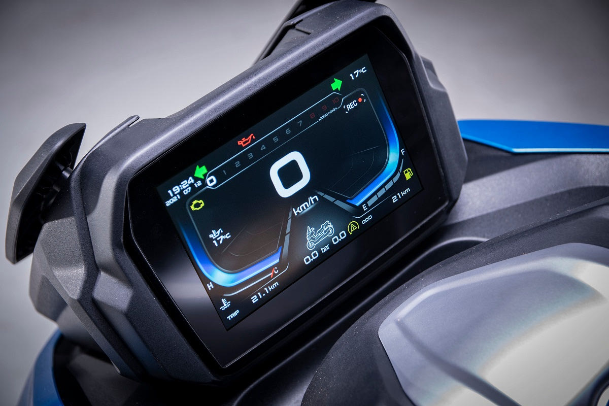 Η οθόνη πληροφοριών είναι έγχρωμη TFT 7 ιντσών. Η αεροδυναμική ζελατίνα διαθέτει δυνατότητα ρύθμισης έτσι ώστε να εξυπηρετεί κάθε ανάγκη και κάθε σωματότυπο, ενώ κάτω από τη σέλα μπορούν να φιλοξενηθούν δύο κράνη, ένα Full Face και ένα τύπου Jet. Την πρακτικότητα αυξάνουν τα δύο ντουλαπάκια κάτω από το τιμόνι, ο γάντζος ανάρτησης αντικειμένων στην ποδιά και η θέση της τάπας πλήρωσης καυσίμου που δεν απαιτεί άνοιγμα της σέλας.