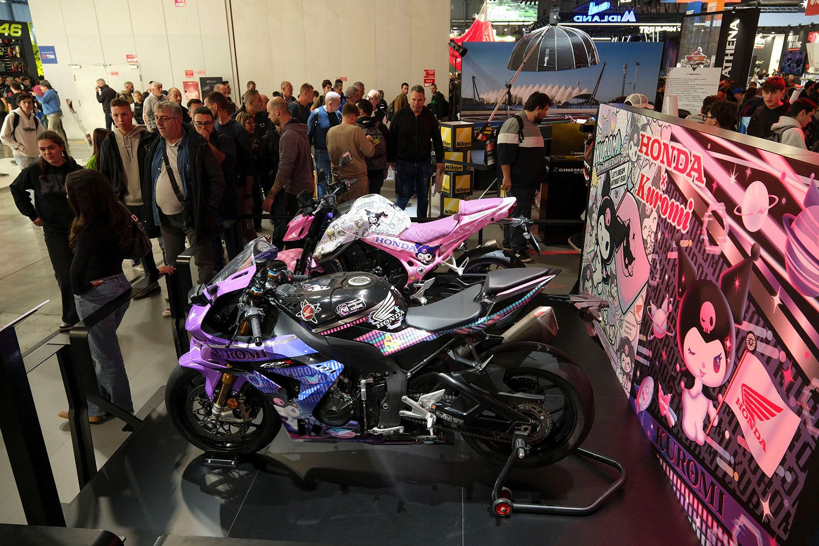 Μια ακόμη ξεχωριστή πινελιά στο περίπτερο της Honda στην EICMA 2025 είναι η παρουσία δύο μοτοσυκλετών με μοναδικό ειδικό σχεδιασμό (wrapping), εμπνευσμένο από τον δημοφιλή χαρακτήρα ‘Kuromi’.