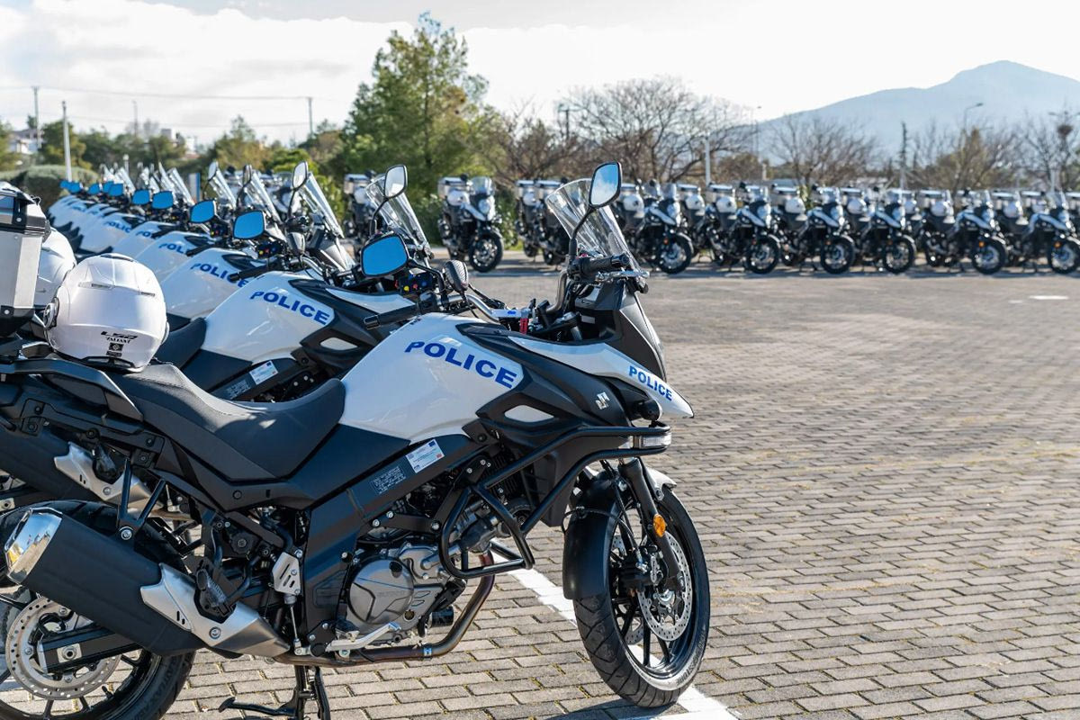 Συνολικά 44 νέες Suzuki V-Strom 650 με υπηρεσιακό χρωματισμό παρέλαβε ο αρχηγός της ΕΛ.ΑΣ. για τις υπηρεσίες Άμεσης Δράσης στην Αττική και τη Θεσσαλονίκη.