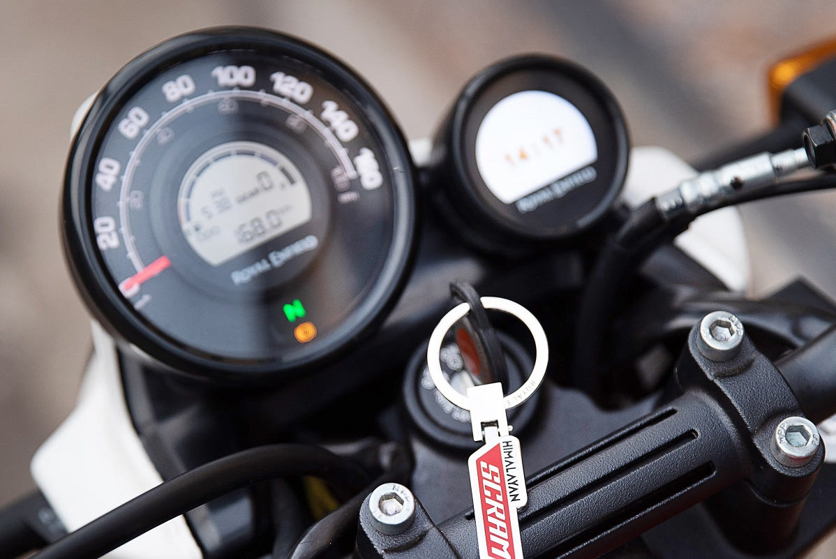 Η σέλλα είναι μονοκόμματη για οδηγό και συνεπιβάτη, και σε προσιτό ύψος. Ο νέος πίνακας οργάνων συνδυάζει αναλογικές και ψηφιακές ενδείξεις, ενώ στον βασικό εξοπλισμό της Scram 411 συμπεριλαμβάνεται και η δεύτερη έγχρωμη οθόνη για το Royal Enfield Tripper Navigation, που προσφέρει εύκολη πλοήγηση και σύνδεση με την εφαρμογή της Royal Enfield στο κινητό τηλέφωνο του οδηγού.