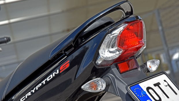 Ένα πλαϊνό σταντ σίγουρα θα έκανε λίγο πιο εύκολη τη ζωή των αναβατών στην πόλη, και αυτή είναι μία έλλειψη του Crypton S από πλευράς λειτουργικότητας. Και μια δεύτερη ίσως είναι η λιτότητα της πληροφόρησης του -κατά τα άλλα ευανάγνωστου- πίνακα οργάνων, που έχει ταχύμετρο, δείκτη βενζίνης και τέσσερις λυχνίες για κάθε σχέση του κιβωτίου, μαζί με τις άλλες βασικές ενδείξεις.