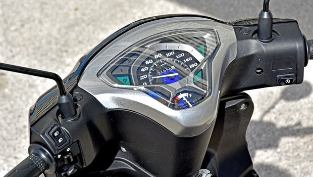 Η μεγέθυνση της ποδιάς, επίσης, εξοικονομεί τον αποθηκευτικό χώρο στο εσωτερικό της, που χωρά ένα μπουκάλι ή ένα πλαστικό ποτήρι καφέ. Παράλληλα, ο χώρος κάτω από τη σέλα -που δεν χωρά βέβαια ένα full-face κράνος- είναι αρκετά μεγάλος και λειτουργικός, και επιπλέον ανοίγει βολικά με το στρίψιμο του κλειδιού από την κεντρική κλειδαριά.