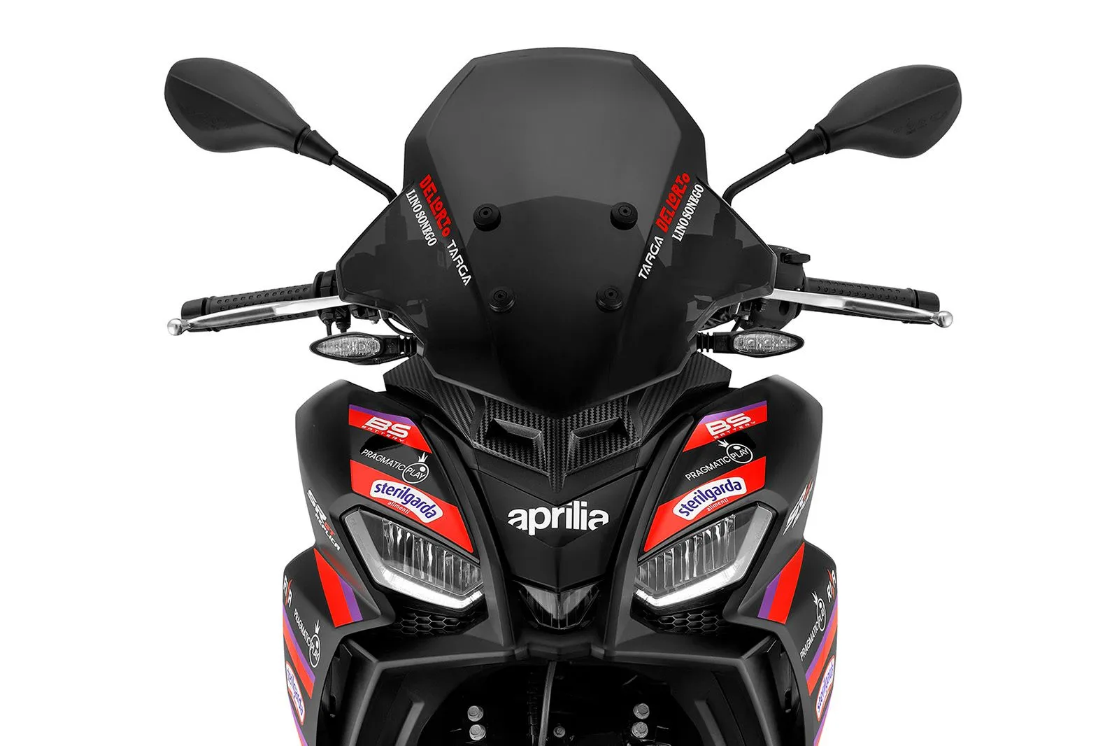 Τα λογότυπα των χορηγών της ομάδας Aprilia Racing προσδίδουν στο Aprilia SR GT Replica 2025 την εντυπωσιακή εμφάνιση των μοτοσυκλέτών RS-GP που αγωνίζονται σε πίστες σε όλο τον κόσμο, ενώ παρέχονται επίσης οι αριθμοί αγώνων των δύο επίσημων αναβατών, του Παγκόσμιου Πρωταθλητή Χόρχε Μαρτίν και του Μάρκο Μπετζάκι. Μία ακόμα αισθητική πινελιά που εκφράζει τη στενή σχέση μεταξύ του SR GT Replica και του κόσμου του MotoGP.