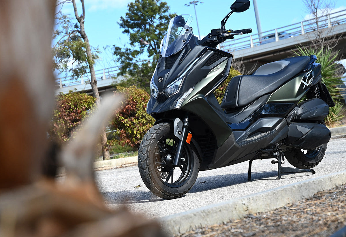 To πρώτο adventure scooter της Kymco φέρει τον αριθμό 360 συμβολίζοντας ότι μπορεί να κινείται περιμετρικά προς πάσα κατεύθυνση, ό,τι οδόστρωμα κι αν το περιμένει. Τα Crossover στοιχεία που το διαχωρίζουν από το Downtown 350, στο οποίο βασίζεται, είναι τα μεγαλύτερα και πιο αιχμηρά πλαστικά με το προτεταμένο ρύγχος κάτω από τη μάσκα, τα νέας σχεδίασης LED φώτα, η τύπου Adventure ζελατίνα, η καρίνα, το τελικό της εξάτμισης με τα αλουμινένια προστατευτικά του και η σέλα. Ανάλογες ενισχύσεις έχει δεχθεί και το πλαίσιο για την off-road κίνηση, ενώ ο κινητήρας G5-SC της Kymco παραμένει αναλλοίωτος. Υγρόψυκτος, με 321 κ.εκ. και προδιαγραφών Euro5, αποδίδει 28,6 ίππους και χαρίζει στο DT X360 όχι μόνο εξαιρετικές επιδόσεις αλλά και άκρως ανταγωνιστική μέση κατανάλωση. Για την ασφαλή του συμπεριφορά στο δρόμο συμβάλλουν το traction control και τα άκρως αποδοτικά φρένα με δικάναλο ABS, της Bosch και τα δύο. Το TCS απενεργοποιείται για το χώμα, ενώ για την ίδια επιφάνεια η Kymco έχει ρυθμίσει διαφορετικά τα ελατήρια και την απόσβεση της ανάρτησης στους τροχούς των 14 και 13 ιντσών εμπρός/πίσω με ανθεκτικότερες ζάντες και ελαστικά διπλής χρήσης. Όσο για τις ανέσεις του, κάτω από τη σέλα χωρά δύο full-face κράνη, σύστημα keyless, δύο θύρες φόρτισης USB και μεγάλη έγχρωμη οθόνη TFT με σύστημα συνδεσιμότητας του smartphone.