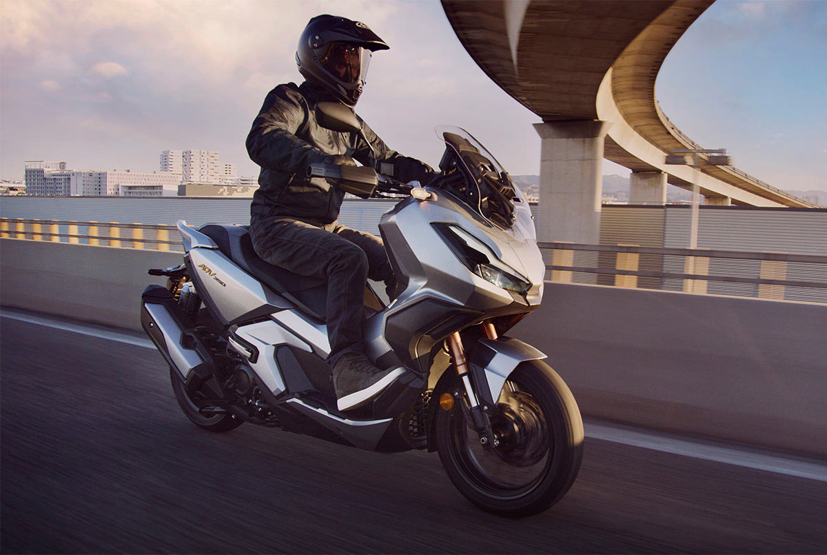 To ADV350 υιοθετεί το adveture στιλ του X-ADV και το φέρνει στα μεσαία κυβικά, με τα μηχανικά μέρη του Forza 350. Όμως δεν είναι «περιπετειώδες» μόνο στην εμφάνιση, καθώς το ατσάλινο σωληνωτό πλαίσιο με ανεστραμμένο πιρούνι 37 mm και τα πίσω αμορτισέρ 130 mm με ανεξάρτητα δοχεία αερίου του, μαζί με τα διπλής χρήσης ελαστικά, το ύψος 145 mm από το έδαφος και το ρεζερβουάρ 11,7 λίτρων, του προσδίδουν δυνατότητες για ελαφρώς χωμάτινες αναζητήσεις. Οι 29,2 ίπποι και τα 31,5 Nm ροπής του μοτέρ eSP+ των 330 κ.εκ. χαρίζουν σπουδαίες επιδόσεις, με την ασφάλεια της ηλεκτρονικής πρόσφυσης του HSTC και του δικάναλου ABS. Η ζελατίνα ρυθμίζεται σε 4 θέσεις ως προς το ύψος, κάτω από τη σέλα υπάρχει χώρος για δύο full-face κράνη, το ντουλαπάκι της ποδιάς έχει θύρα φόρτισης USB-C και το Smart Key κάνει εύκολη την καθημερινότητα στην πόλη. Το ίδιο και το σύστημα Honda Smartphone Voice Control, για τον φωνητικό έλεγχο των εφαρμογών του smarthphone μέσω της οθόνης TFT του πίνακα οργάνων.
