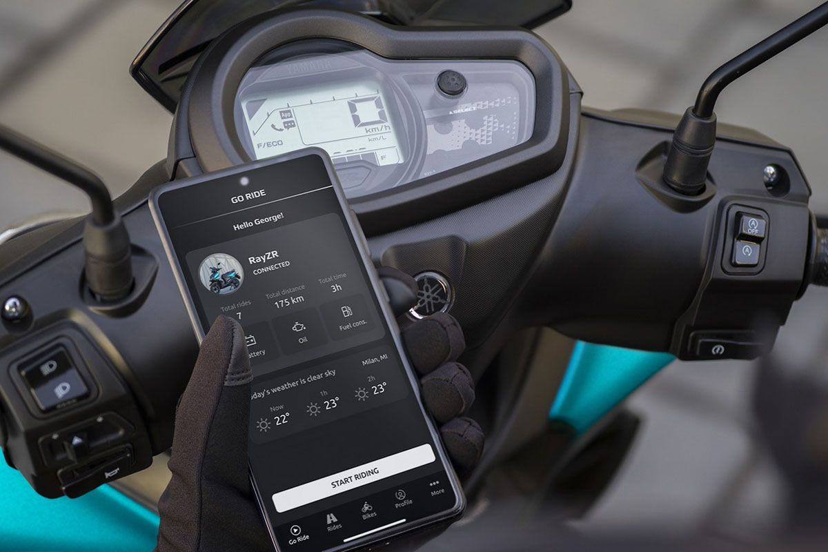 Στη φετινή του αναβάθμιση το RayZR απέκτησε συνδεσιμότητα Bluetooth στον ψηφιακό του πίνακα οργάνων, που συνδυάζεται με την εφαρμογή Yamaha MyRide app στο smartphone του αναβάτη.
