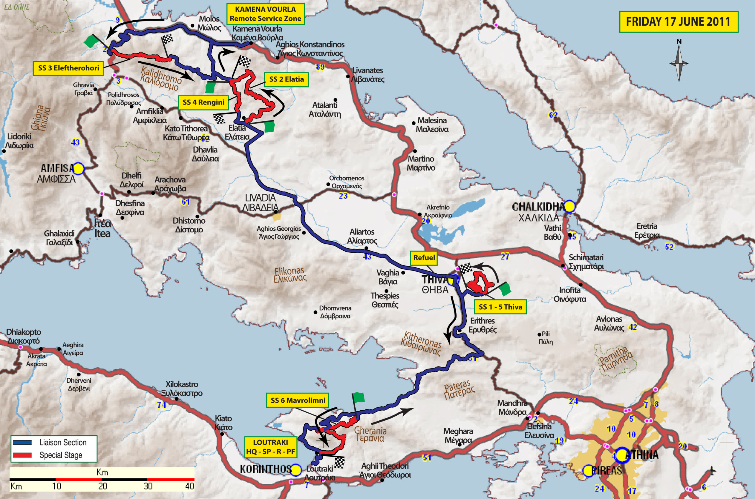 ειδικές διαδρομές περιλαμβάνει ο φετινός αγώνας. Οι έξι (Θήβα, Κλένια, Γυμνό, Κεφαλάρι, Άγιοι Θεόδωροι, Νέα Πίσια) είναι επαναλαμβανόμενες. Εν συγκρίσει με το 2009 ίδιες είναι η Θήβα, το Γυμνό και η Νέα Πίσια. Αλλαγές για τις ειδικές Κλένια και Κεφαλάρι στον τερματισμό.