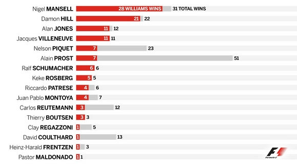 Ο πιο επιτυχημένος οδηγός με δικά της μονοθέσια, ήταν ο Nigel Mansell, καθώς πήρε 28 από τις συνολικά 31 νίκες της καριέρας του. Ακολουθεί στη λίστα ένας άλλος πρώην παγκόσμιος πρωταθλητής, ο Damon Hill, που ως οδηγός της Williams γιόρτασε τις 21 εκ των 22 νικών του στη Formula 1. Διψήφιο αριθμό επιτυχιών έχουν άλλοι δύο οδηγοί που κάθισαν στο θρόνο της κορωνίδας του μηχανοκίνητου αθλητισμού: οι Alan Jones και Jacques Villeneuve.