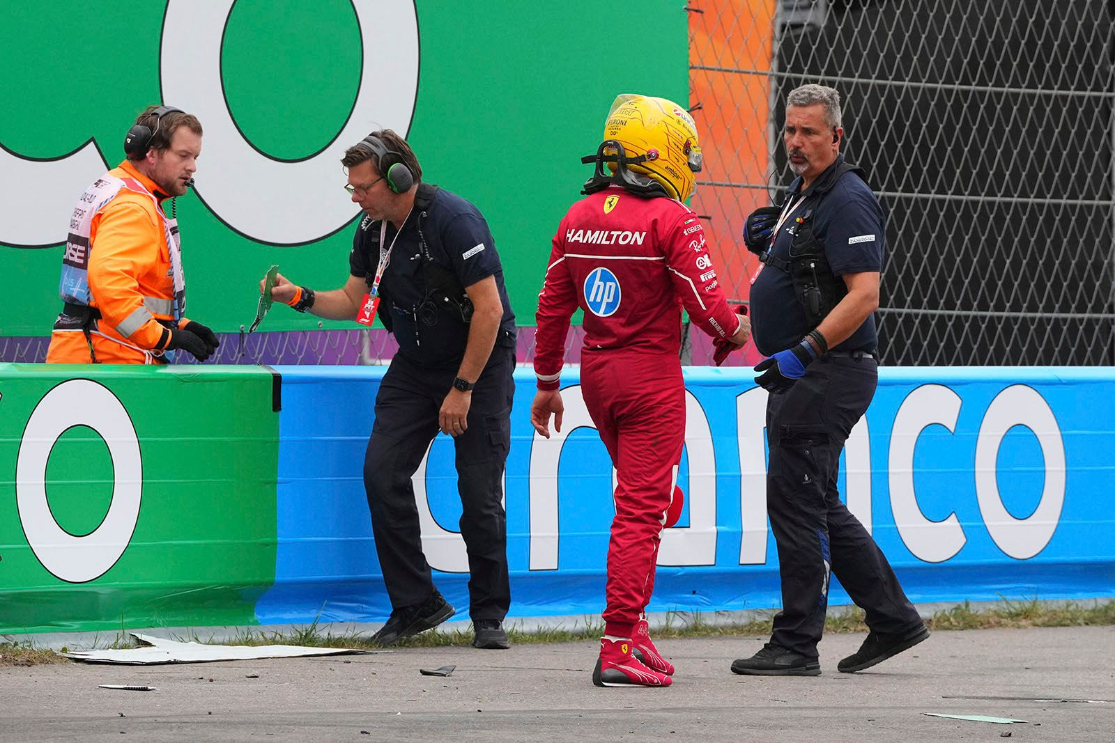 Ο 40χρονος οδηγός της Scuderia βρισκόταν στην 7η θέση όταν άρχισε να βρέχει πολύ ελαφρά στο Ζάντβορτ. Ένα τίναγμα της ουράς του μονοθεσίο τον έστειλε στο βαμμένο -και συνεπώς ολισθηρό- εξωτερικό τμήμα της στροφής 3, αλλά αρχικά κατάφερε να ελέγξει την υπερστροφή της ουράς της SF-25.