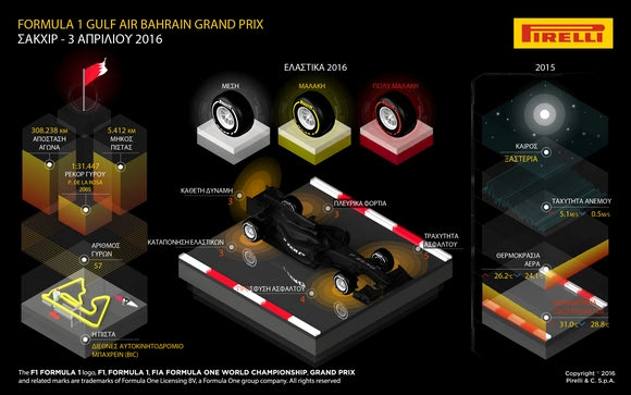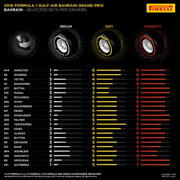 « Οι νέοι κανονισμοί ελαστικών για το 2016 αποδεικνύονται μεγάλη επιτυχία. Είδαμε πολλές εναλλακτικές στρατηγικές στην Αυστραλία. Το Μπαχρέιν είναι μια τελείως διαφορετική πίστα όπου η συμπεριφορά των ελαστικών επηρεάζεται από την μεγάλη πτώση στη θερμοκρασία κατά τη διάρκεια του αγώνα. Αυτό μας δίνει άλλες παραμέτρους και προκλήσεις. Έχει ενδιαφέρον να δούμε ποιος έμαθε τα περισσότερα στην Αυστραλία και θα μπορέσει να εκμεταλλευτεί καλύτερα τα νέα δεδομένα. Υπάρχουν μερικές αντικρουόμενες επιλογές ελαστικών από τις ομάδες οι οποίες θα παίξουν κομβικό ρόλο στο αποτέλεσμα του αγώνα».
