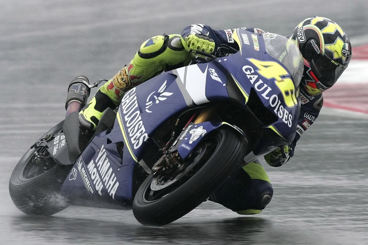 Και αριστουργήματα υπήρχαν πολλά, φυσικά: η επιβλητική νίκη με τεράστια διαφορά στο μουσκεμένο Ντόνινγκτον Παρκ το 2005 (που θύμισε τον Άιρτον Σένα το 1993), η απίστευτη προσπέραση στον Κέισι Στόνερ μέσα από τα χρώματα στην κάθοδο της στροφής Corkscrew της Λαγκούνα Σέκα το 2008, η ισοφάριση των 76 νικών του Mike Hailwood στο Σάξενρινγκ το 2005, που την πανηγύρισε με τη σημαία ’76 Rossi, 76 Hailwood, I’m sorry Mike’.
