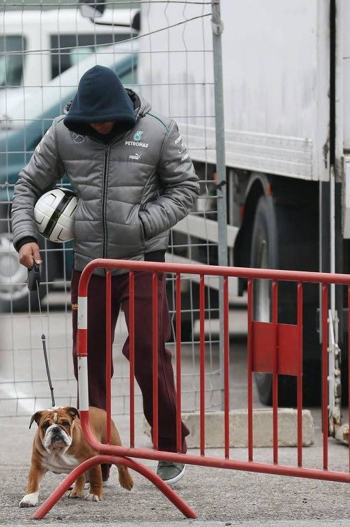 Ο Χάμιλτον και ο καινούργιος φίλος του, ο Ρόσκο οδεύουν προς το γκαράζ της Mercedes