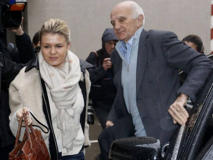 Κατά την άφιξη της στο πανεπιστημιακό νοσοκομείο της Γκρενόμπλ η σύζυγος του, Κορίνα που στέκεται αξιοπρεπώς δίπλα του εδώ και είκοσι χρόνια, μίλησε για πρώτη φορά στους δημοσιογράφους.