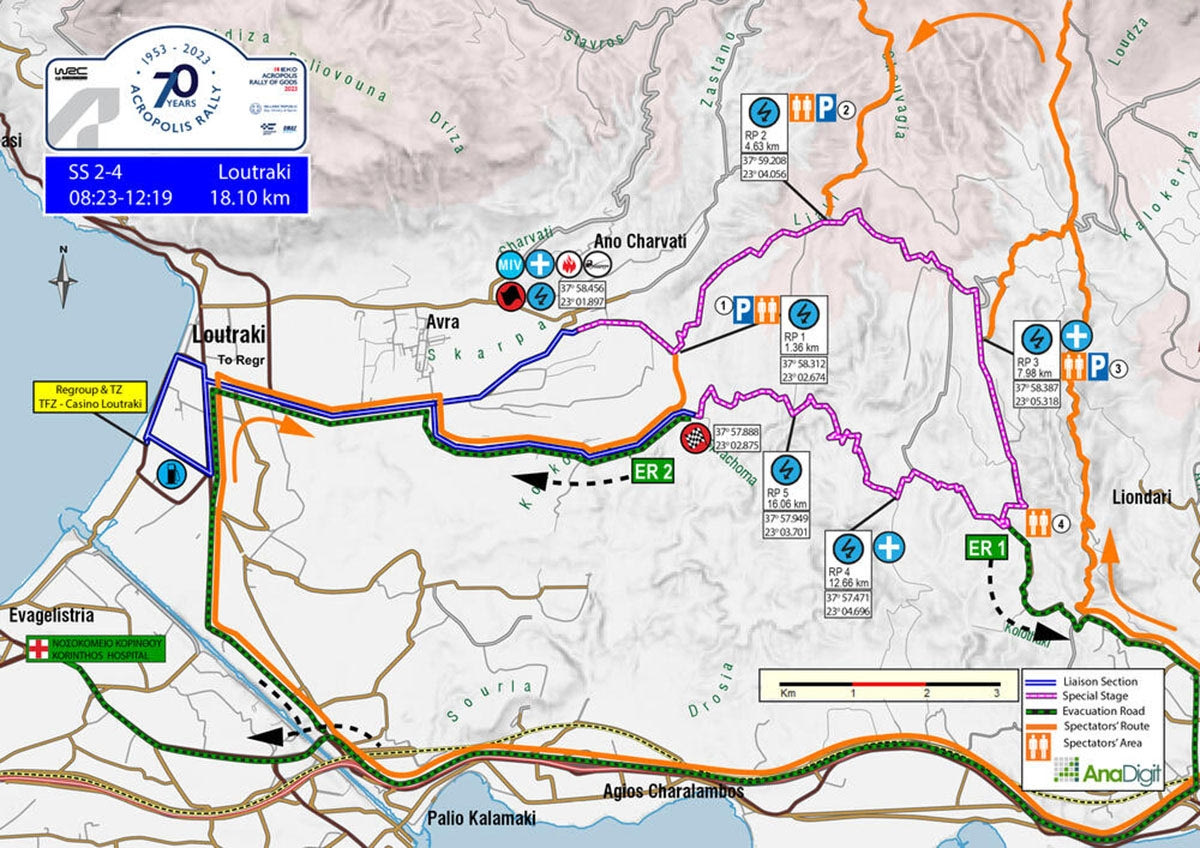 Αρχικά θα κατευθυνθούν προς το Λουτράκι για την ομώνυμη πρώτη Ειδική της ημέρας. Θα παραμείνουν στην περιοχή για να αγωνιστούν έπειτα στην ΕΔ Πίσσια και πάλι στην ΕΔ Λουτράκι, πριν κατευθυνθούν βορειότερα για τις δύο υπόλοιπες δοκιμασίες της ημέρας: δύο κλασσικές “ακροπολικές” Ειδικές, τη Λιβαδειά και την Ελάτεια. Ας δούμε τις ΕΔ βάσει του επίσημου προγράμματος του αγώνα: