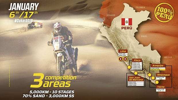 Και ο νικητής του 2017 στις μοτοσικλέτες, Σαμ Σάντερλαντ, λέει πως «η ανοιχτόχρωμη άμμος στους αμμόλοφους του Περού δεν φαίνεται όταν ο ήλιος είναι ψηλά, κι η πλοήγηση θα είναι μια μεγάλη πρόκληση». Όμως, τα βροχερά δάση και τα ορεινά περάσματα των Άνδεων και οι τύπου WRC Ειδικές της Αργεντινής, τα πολλά πρόσωπα και τα περάσματα από χώρα σε χώρα που έκαναν αυτόν τον αγώνα ιδιαίτερο, δεν θα είναι φέτος εδώ.