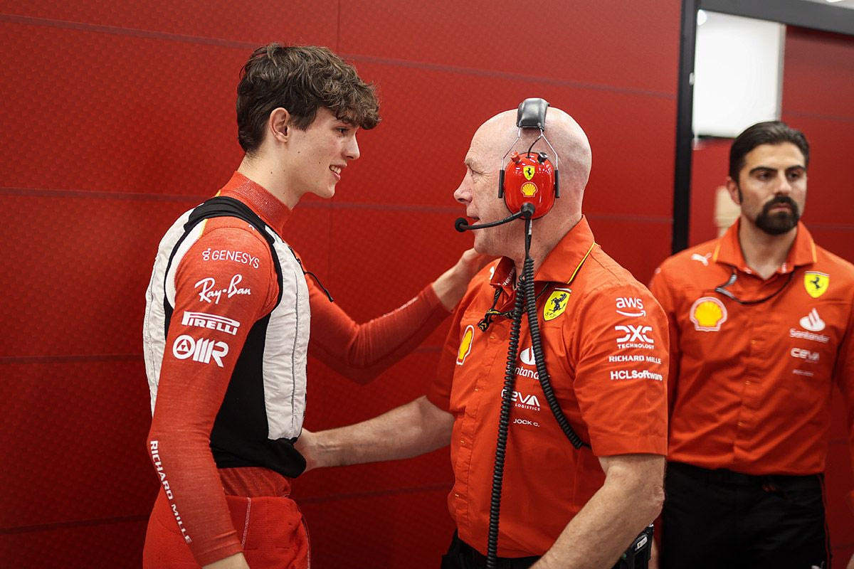 Ο Όλιβερ Μπέρμαν (αριστερά) συζητά με τον Τζοκ Κλίαρ στο γκαράζ της Scuderia Ferrari Antonin Vincent / DPPI / Scuderia Ferrari Press Office