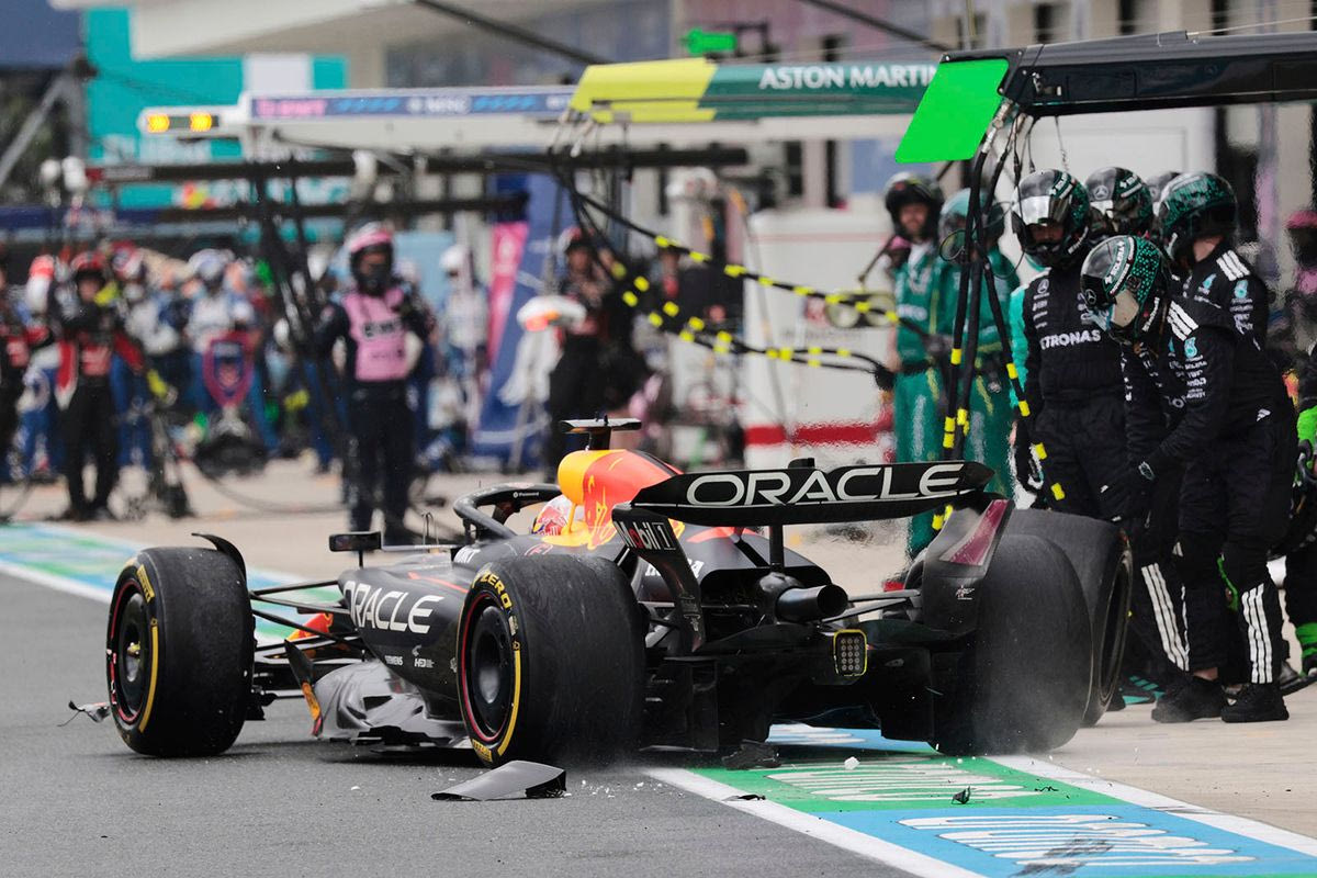 Όμως, η Red Bull τον απελευθέρωσε επικίνδυνα μπροστά από τον Αντρέα Κίμι Αντονέλι, που κατευθυνόταν προς το γκαράζ της Mercedes, ακριβώς μπροστά του, για τη δική του αλλαγή ελαστικών. Μόνο χάρη στα γρήγορα αντανακλαστικά των Φερστάπεν και Αντονέλι αποφεύχθηκε μια σοβαρότερη σύγκρουση, που θα μπορούσε να είχε πιο άσχημα αποτελέσματα.