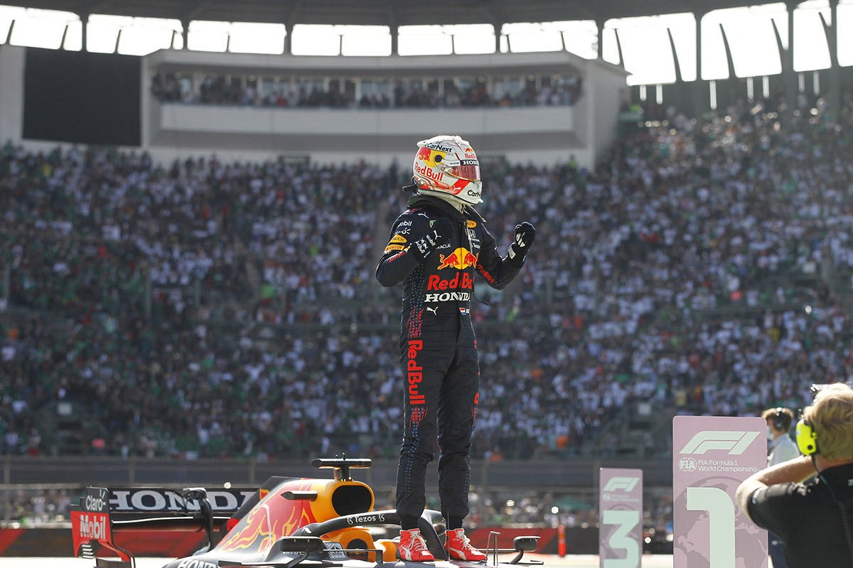 Ο Μαξ Φερστάπεν πανηγυρίζει μετά την επιβλητική νίκη του στο GP του Μεξικού | 7 Νοεμβρίου 2021 Associated Press