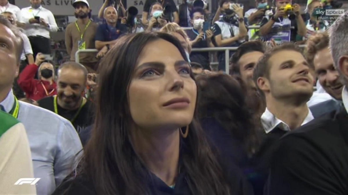 Η εκθαμβωτική σύντροφος του Ολλανδού έτρεξε στην αγκαλιά του ενώ η κάμερα την έπιασε να μην μπορεί να συγκρατήσει τα δάκριά της για την τεράστια νίκη του Φερστάπεν.