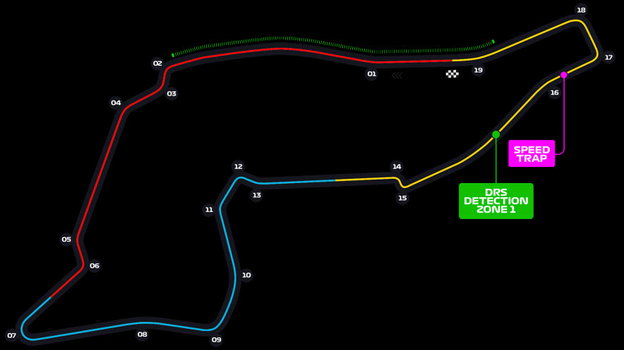 - Πρόκειται για μια πίστα στην οποία για να κινηθείς γρήγορα θα πρέπει να οδηγείς στρωτά, με ροή και να βρεις έναν καλό ρυθμό. Είναι επίσης καθοριστικής σημασίας να έχεις μια καλή έξοδο από την τελευταία στροφή Rivazza ώστε να κινηθείς γρήγορα στην ευθεία εκκίνησης τερματισμού, όπου βρίσκεται και η μοναδική ζώνη DRS, πριν το δυνατό φρενάρισμα για την πρώτη στροφή. Εκεί είναι το σημείο κλειδί της πίστας για προσπέρασμα.