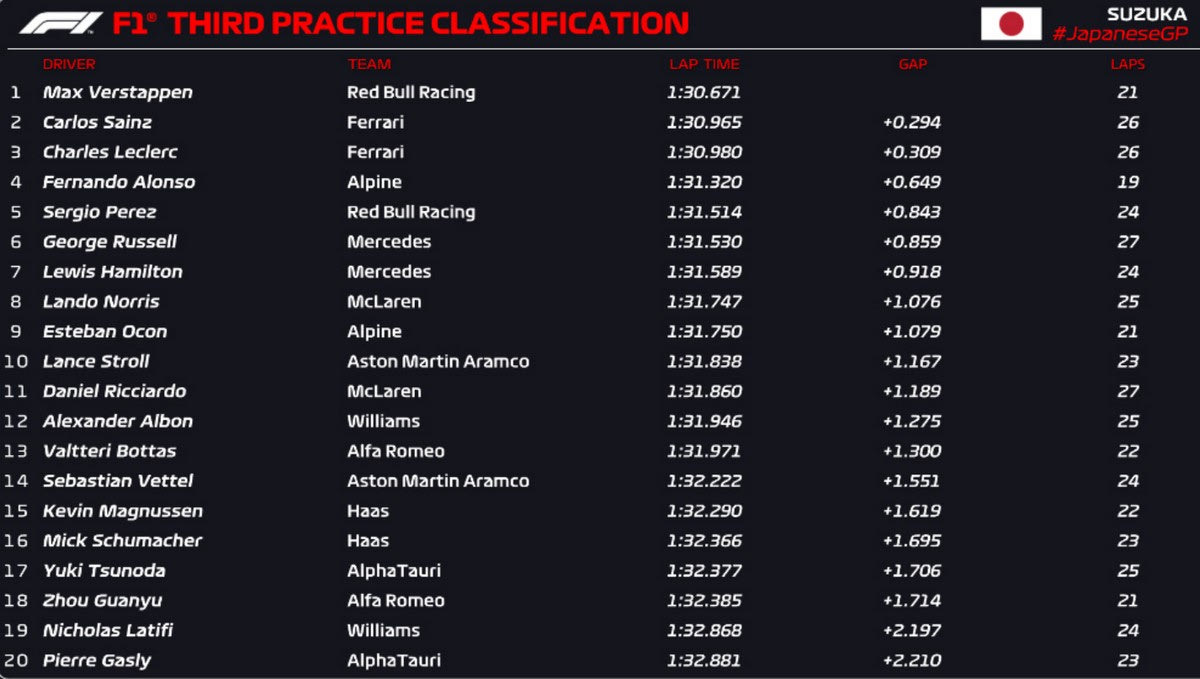 Ο Μαξ Φερστάπεν σημείωσε τον ταχύτερο χρόνο στην τρίτη περίοδο ελεύθερων δοκιμών στην πίστα της Σουζούκα. Στο 2-3 η Ferrari.