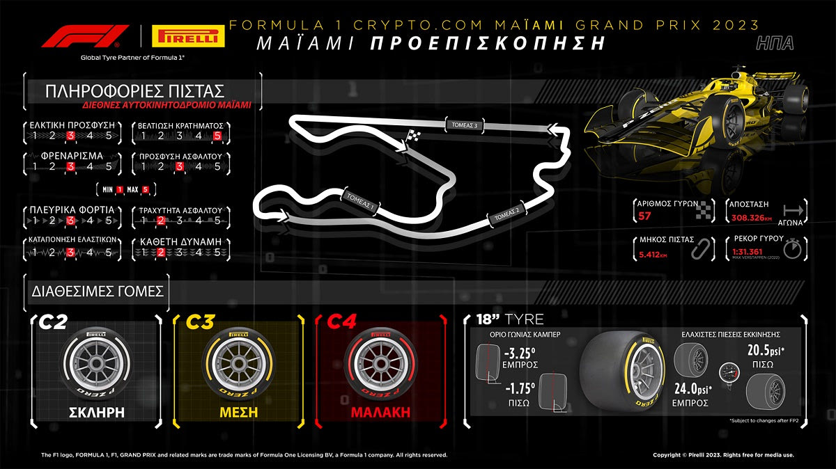 Τα δεδομένα των ελαστικών για το GP Μαϊάμι 2023 PIRELLI